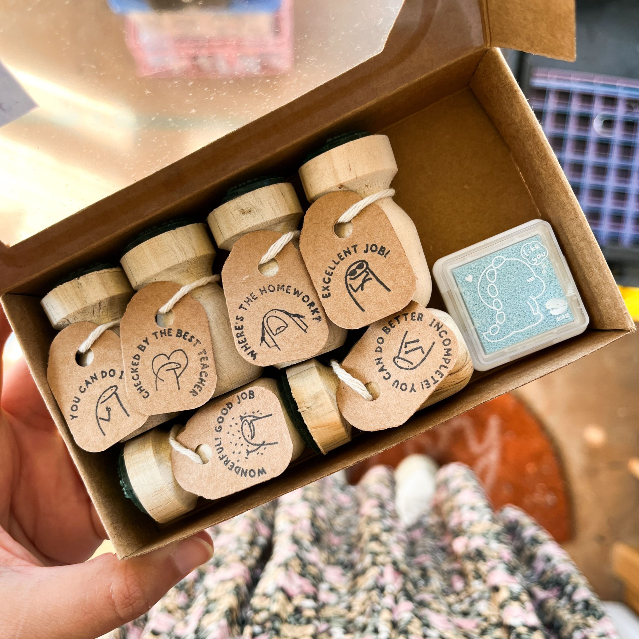 Kit profesores en ingles de 6 mini timbres con una mini tinta de 2×2 cm de regalo (color al azar)