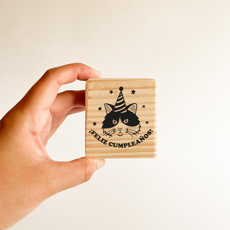 Timbre de fotopolímero montado base de madera cepillada.