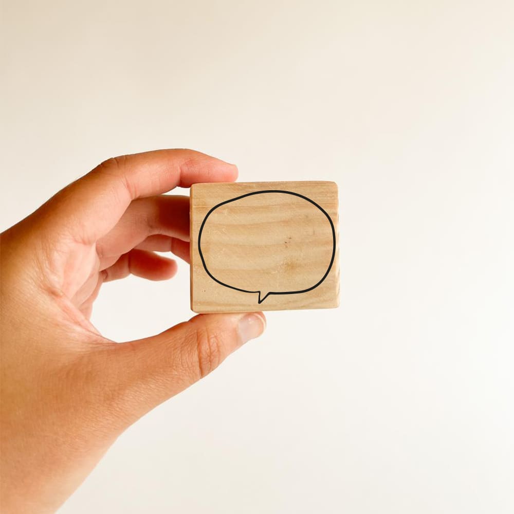 Timbre de fotopolímero montado base de madera cepillada.